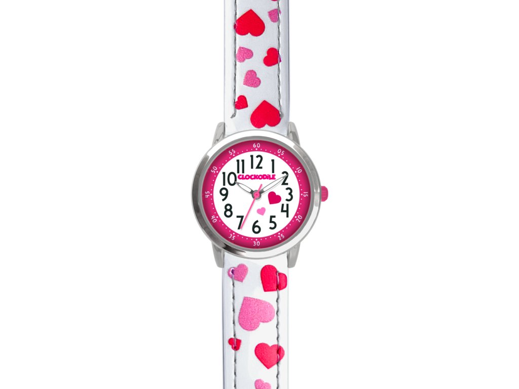 CLOCKODILE Bílé dívčí dětské hodinky SRDÍČKA
