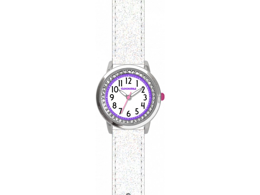 CLOCKODILE Bílé třpytivé dívčí dětské hodinky s kamínky SPARKLE