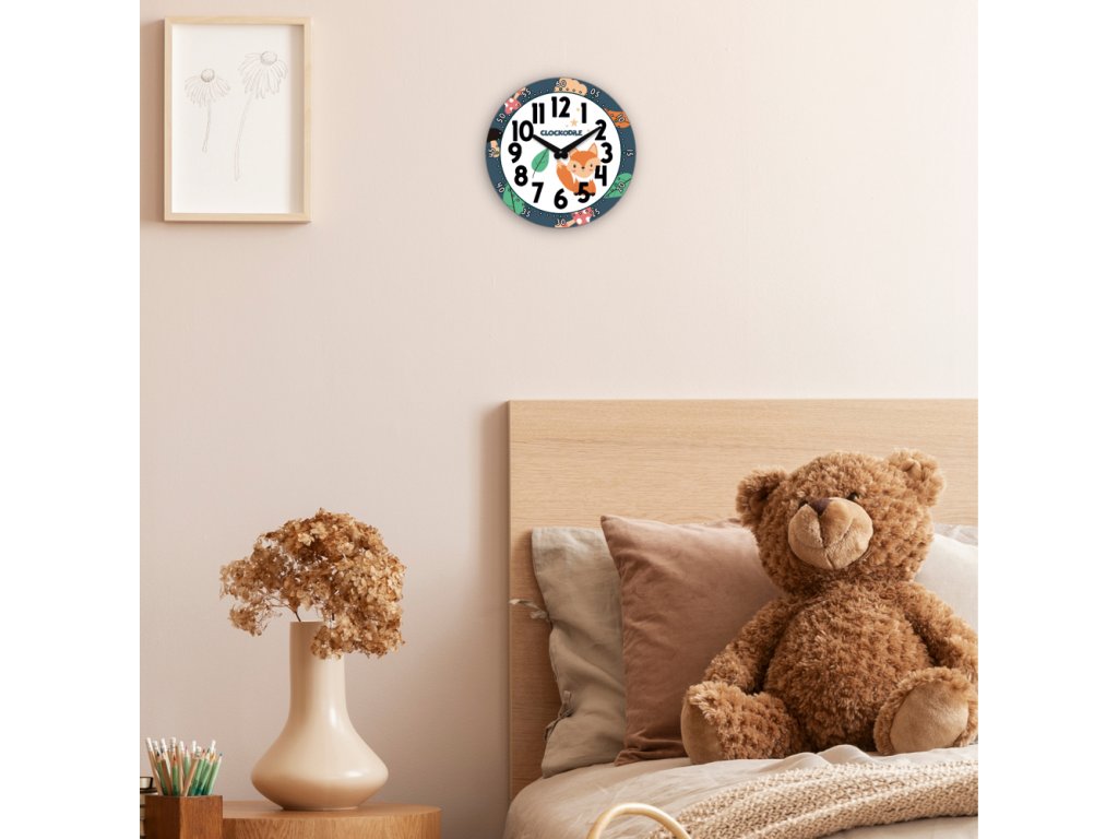 CLOCKODILE Dětské nástěnné hodiny modré s liškou ⌀25cm