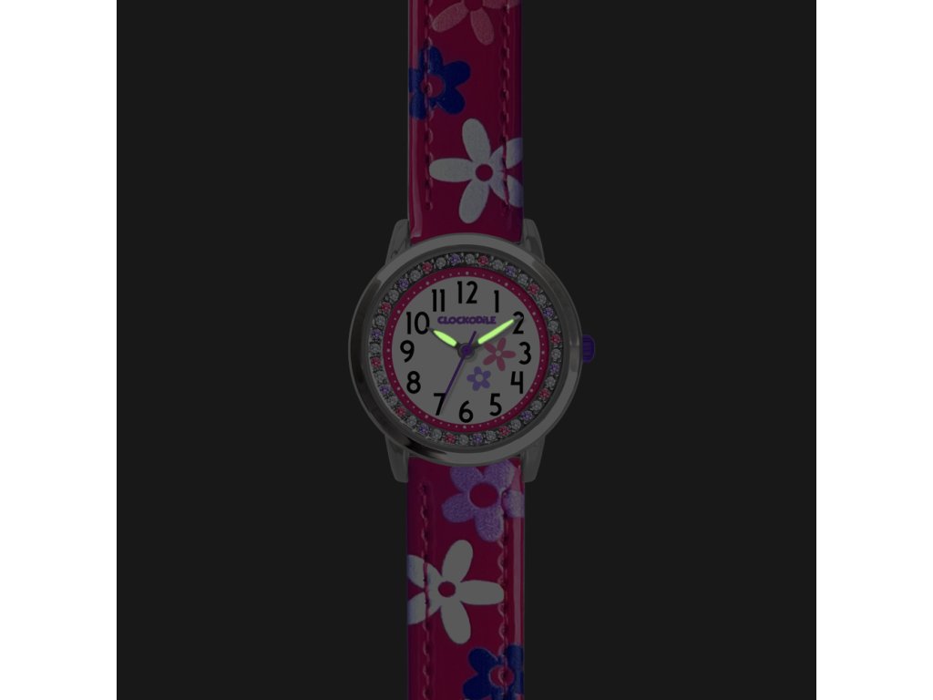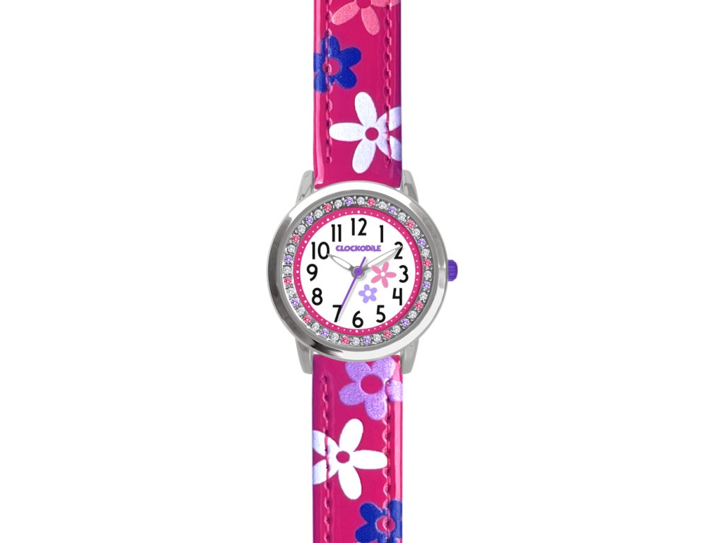 CLOCKODILE Růžové dívčí dětské hodinky s kamínky a kytičkami