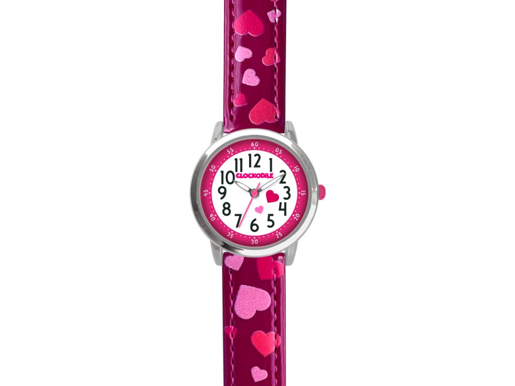 CLOCKODILE Růžové dívčí dětské hodinky SRDÍČKA