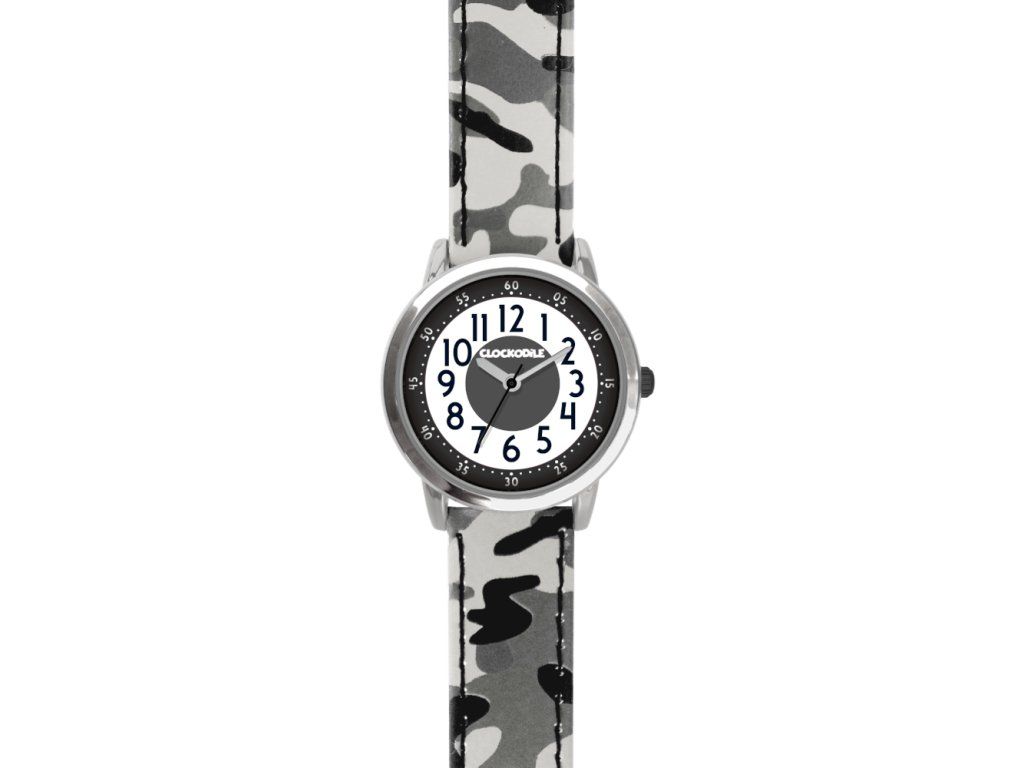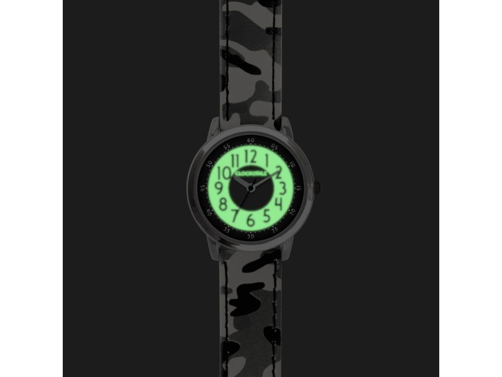 CLOCKODILE Svítící šedé chlapecké dětské hodinky ARMY s maskáčovým vzorem