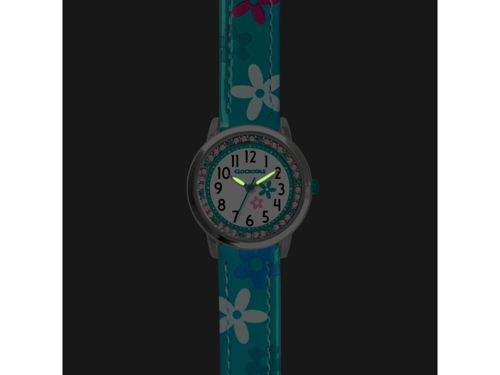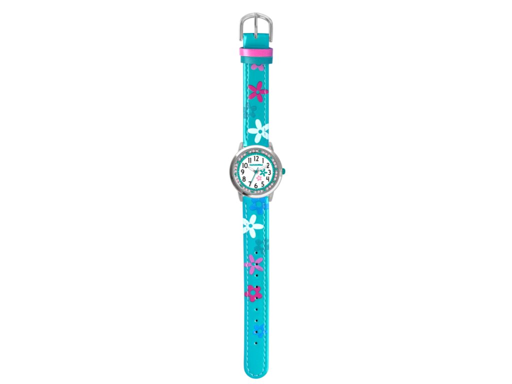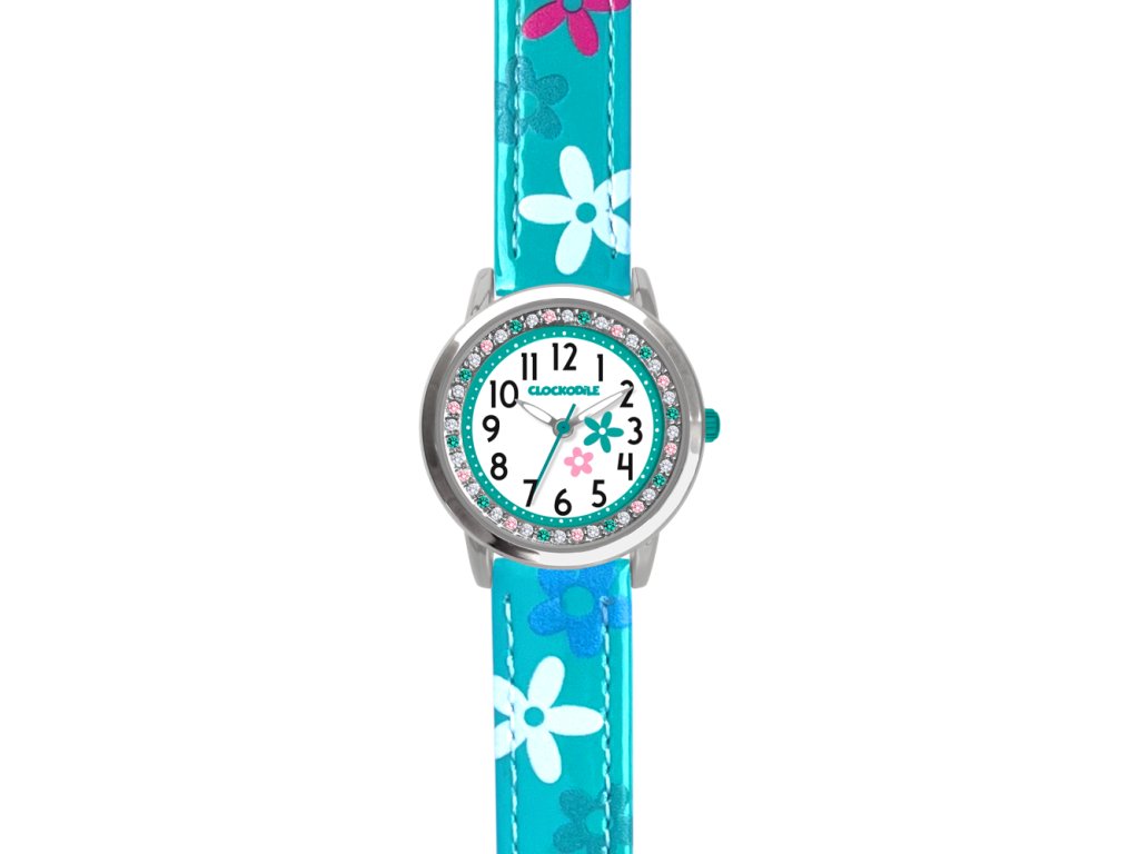 CLOCKODILE Tyrkysové dívčí dětské hodinky s kamínky a kytičkami