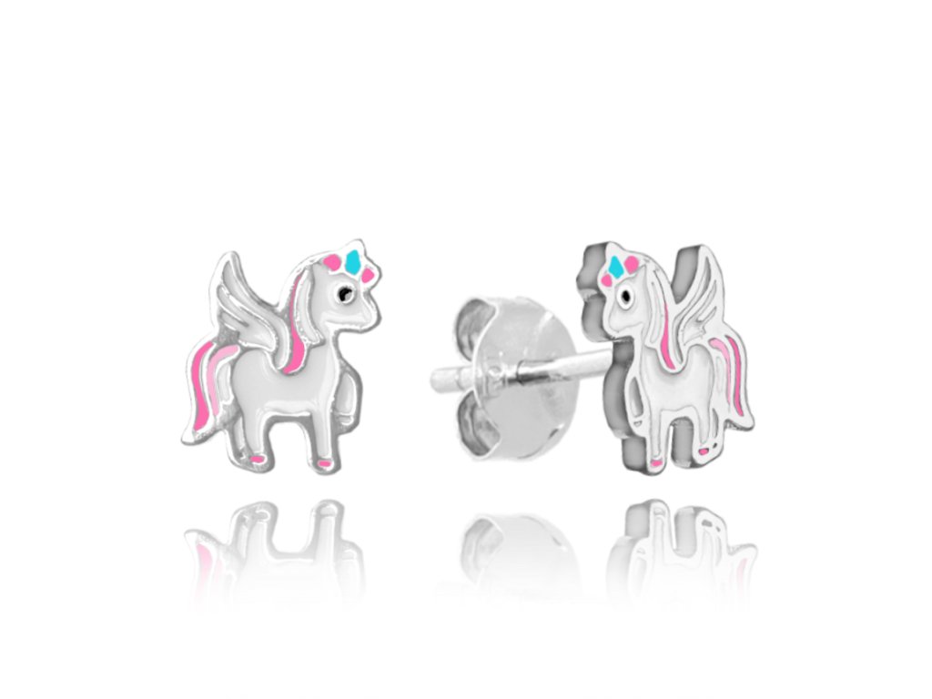 MINET Barevné dětské stříbrné náušnice JEDNOROŽCI