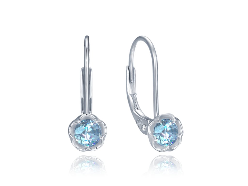 MINET Dětské stříbrné náušnice kytičky s modrými zirkony