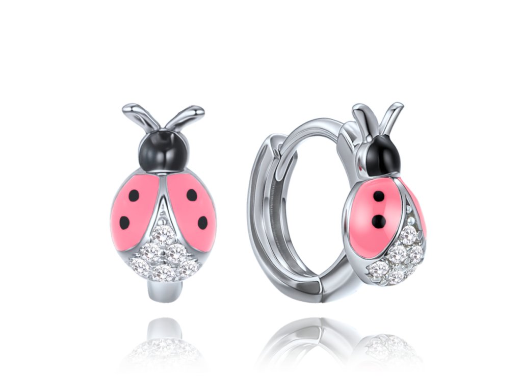 MINET Dětské stříbrné náušnice růžové berušky vykládané zirkony