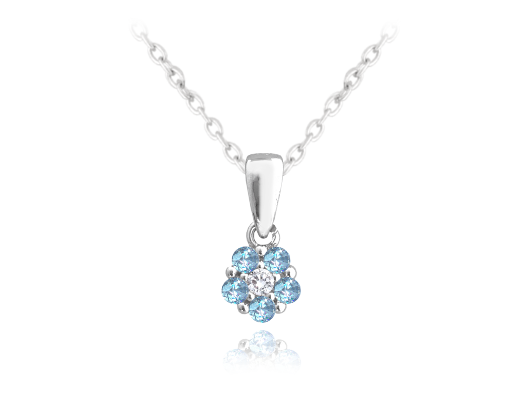 MINET Dětský stříbrný náhrdelník KYTIČKA se světle modrými zirkony