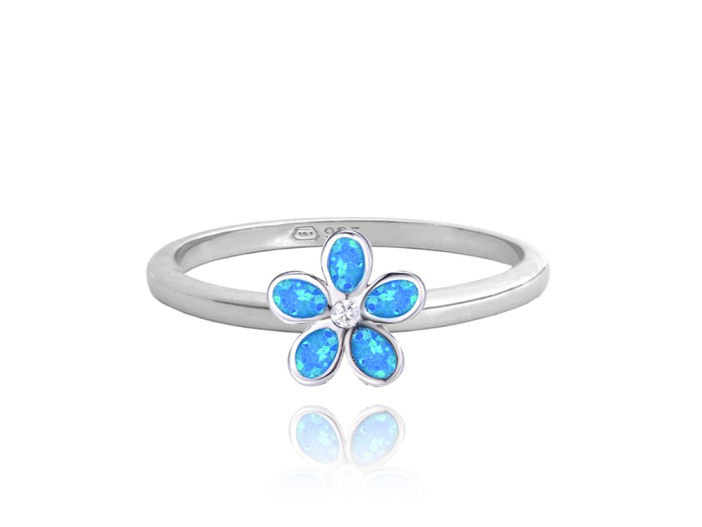MINET Dětský stříbrný prsten KYTIČKY s modrými opálky vel. 50