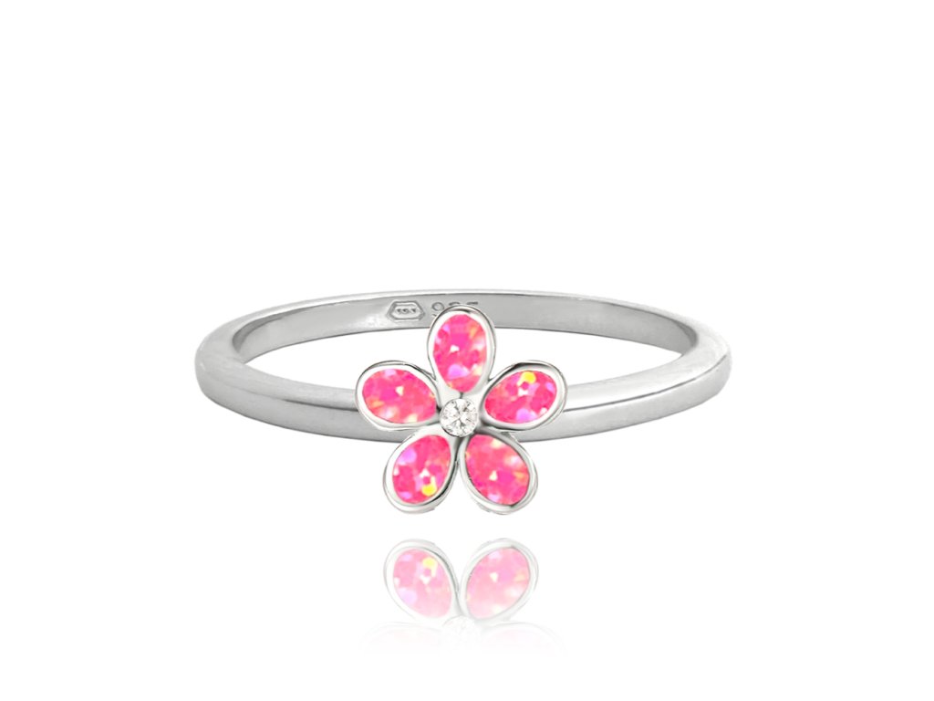MINET Dětský stříbrný prsten KYTIČKY s růžovými opálky vel. 50