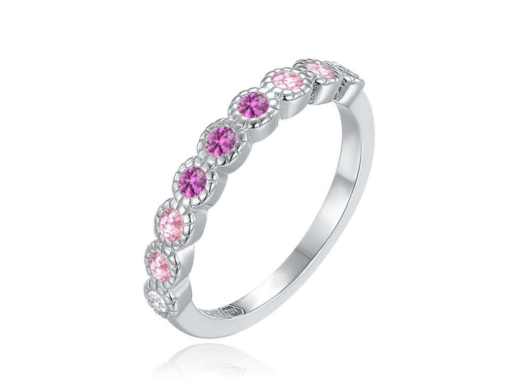 MINET Dětský stříbrný prsten s bílými, růžovými a červenými zirkony vel. 58