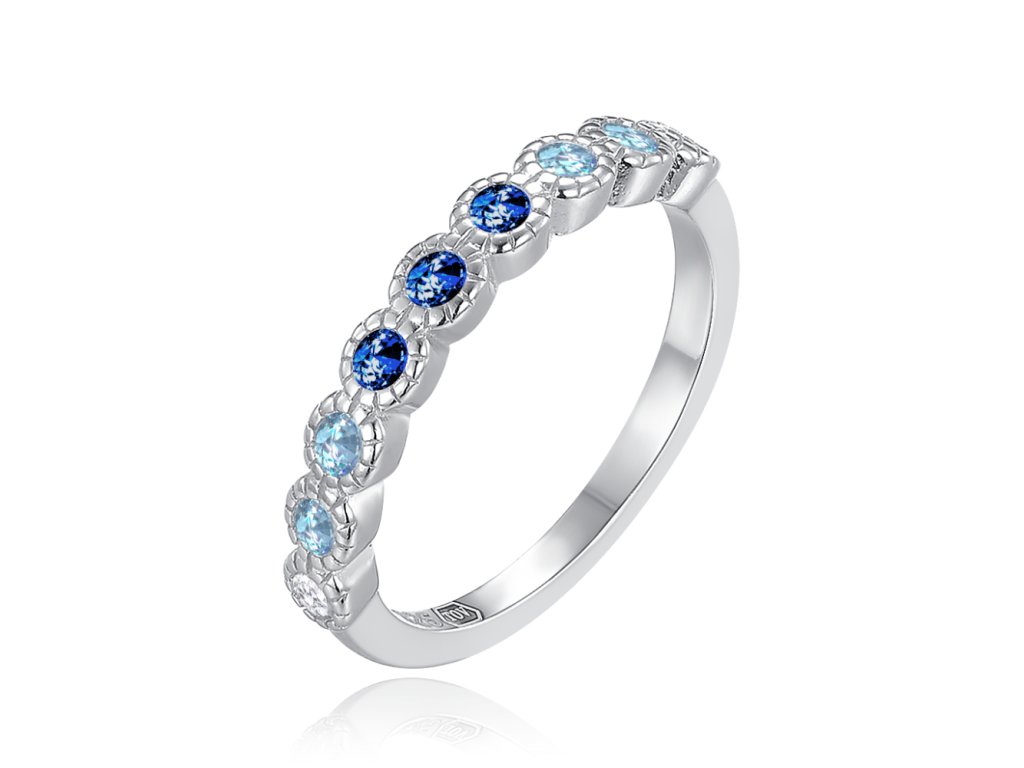 MINET Dětský stříbrný prsten s bílými, světle modrými a tmavě modrými zirkony vel. 48