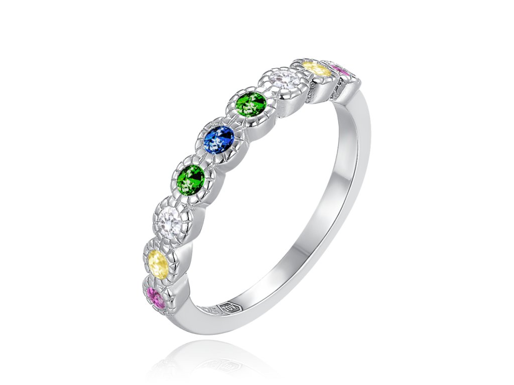 MINET Dětský stříbrný prsten s různobarevnými zirkony vel. 50