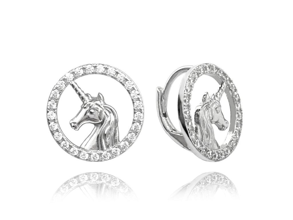 MINET Třpytivé dětské stříbrné náušnice JEDNOROŽCI s bílými zirkony